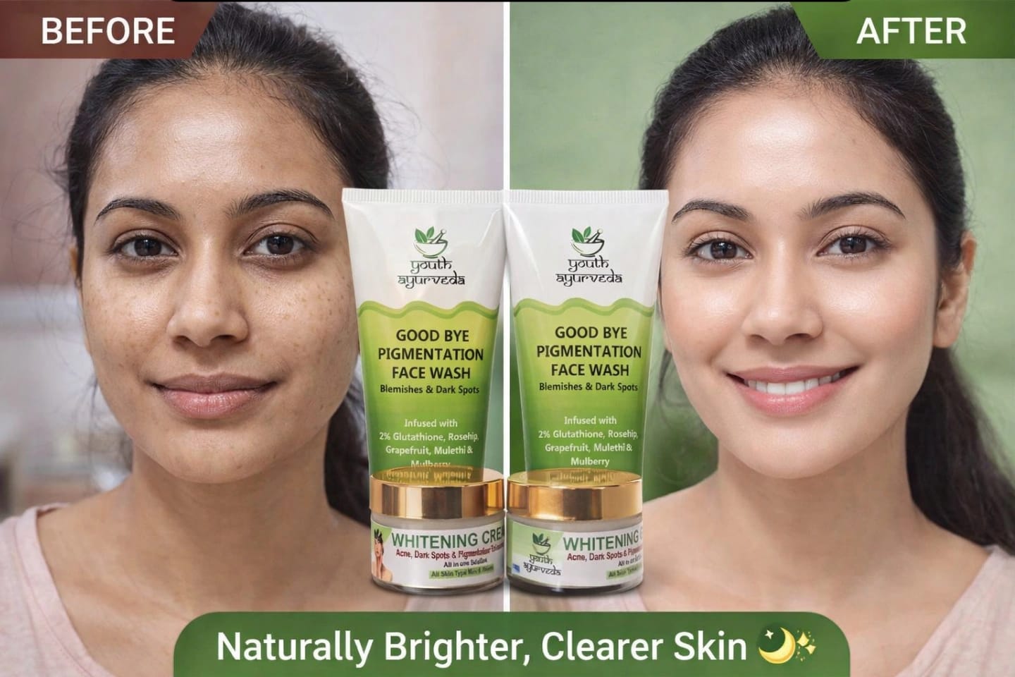 Youth Ayurveda Whitening Cream Combo Set is specially designed to target acne, dark spots, and pigmentation while promoting a brighter and more even skin tone. This powerful skincare combo helps nourish, hydrate, and improve overall skin texture with regular use.